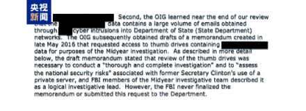 当地时间21日,美国司法部公布了一份最新解密的司法部监察报告文件,涉及美国联邦调查局(FBI)对前国务卿希拉里·克林顿“邮件门”事件进行调查的处理情况。